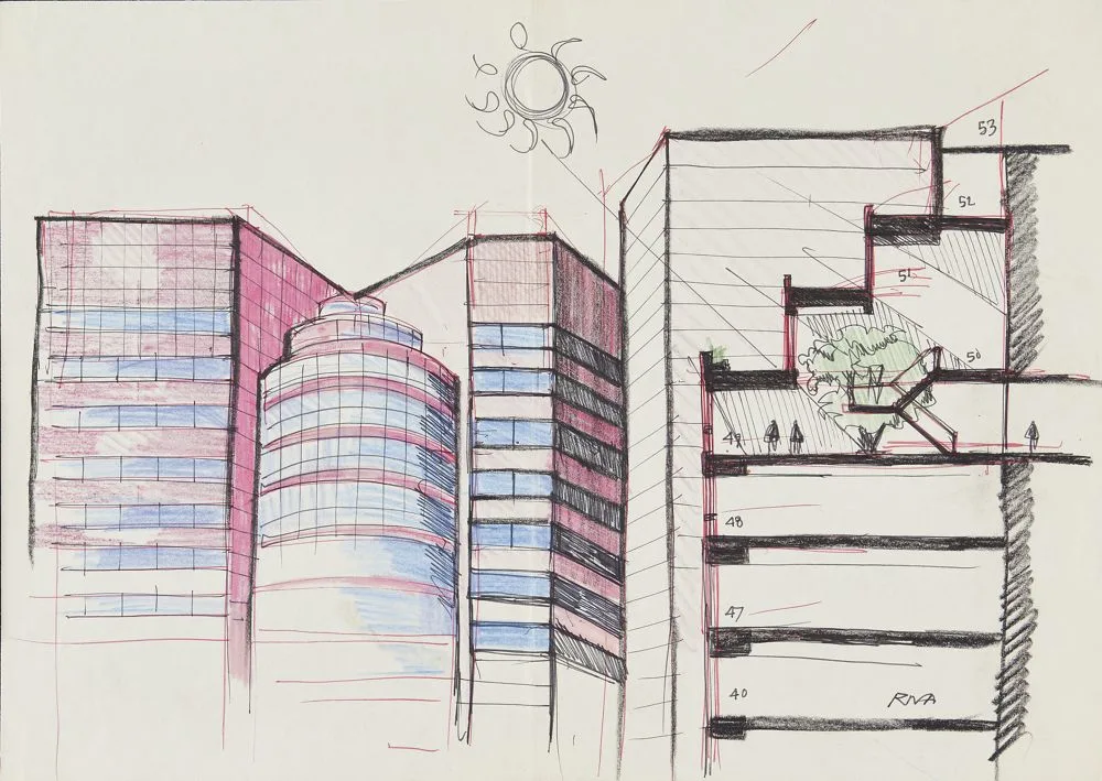 Drawings, tower structure, Exchange Square (1983–1988), Hong Kong