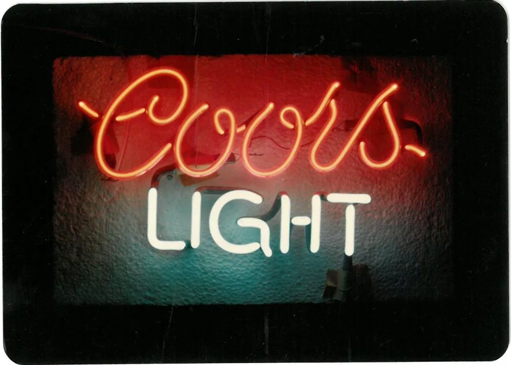 Photograph, night view, neon sign for Coors Light beer, Hong Kong