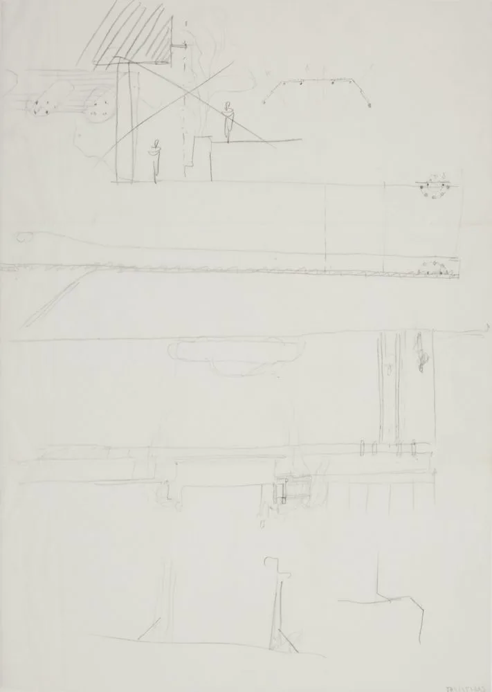 Sketches, section and layout of north entry and study of placement of light fixtures over entry steps and planters, Bond Centre (now Lippo Centre) (1984–1988), Queensway, Admiralty, Hong Kong