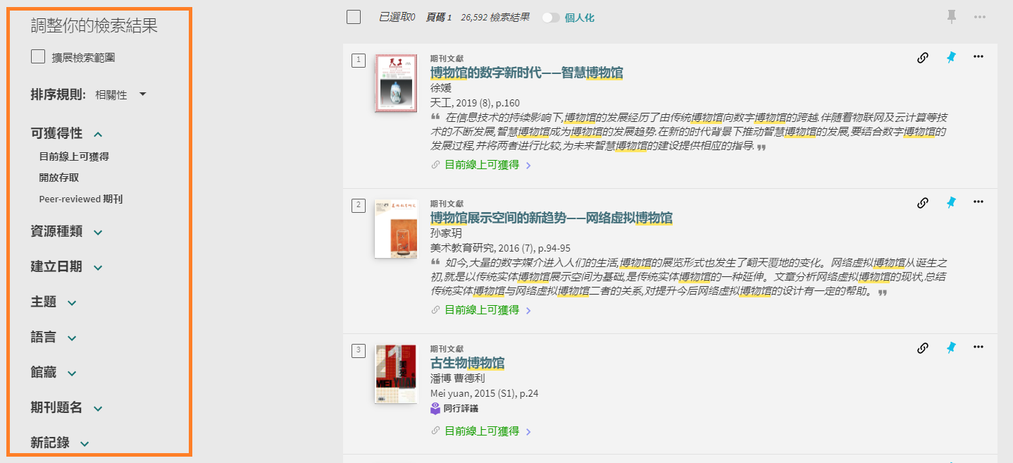 請按照以下步驟在 Primo 檢索期刊文獻: