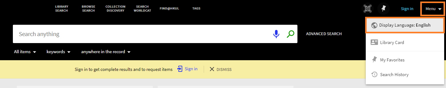 點擊右上角Menu - Display Language以更改顯示語言。